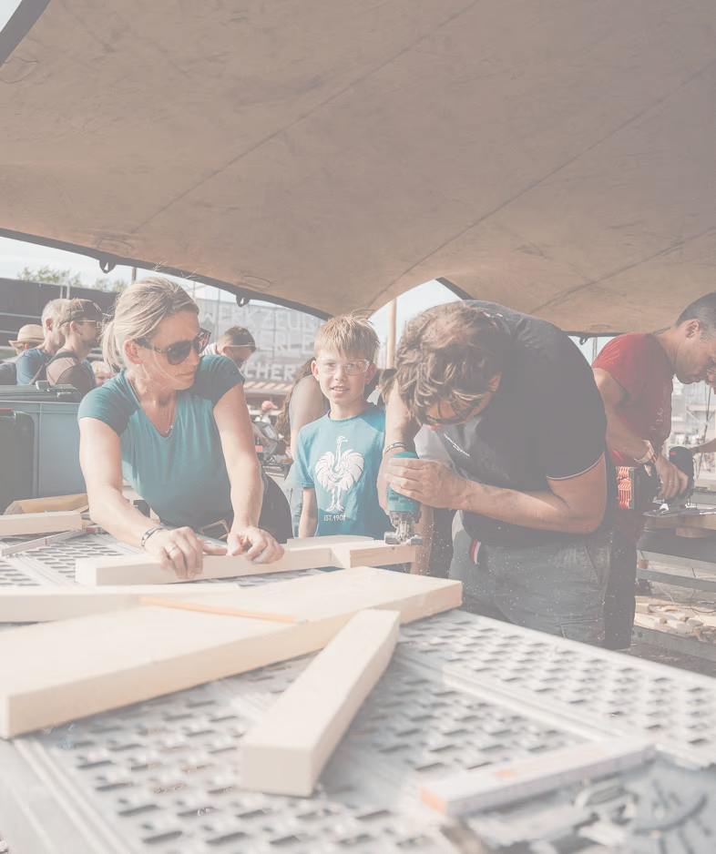 Mit deinem Festivalticket hast du Zugang zu allen Angeboten – egal ob du schweißen willst, mit Holz arbeitest, ein Tiny House bauen oder dein erstes DIY-Projekt starten möchtest.🛠