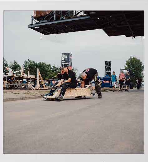 Im Herzen des Festivalgeländes liegt die Arena. Hier präsentieren über 300 Schrauber ihre selbstgebauten Fahrzeuge. Setz dich ins Publikum und erlebe spektakuläre Testfahrten.